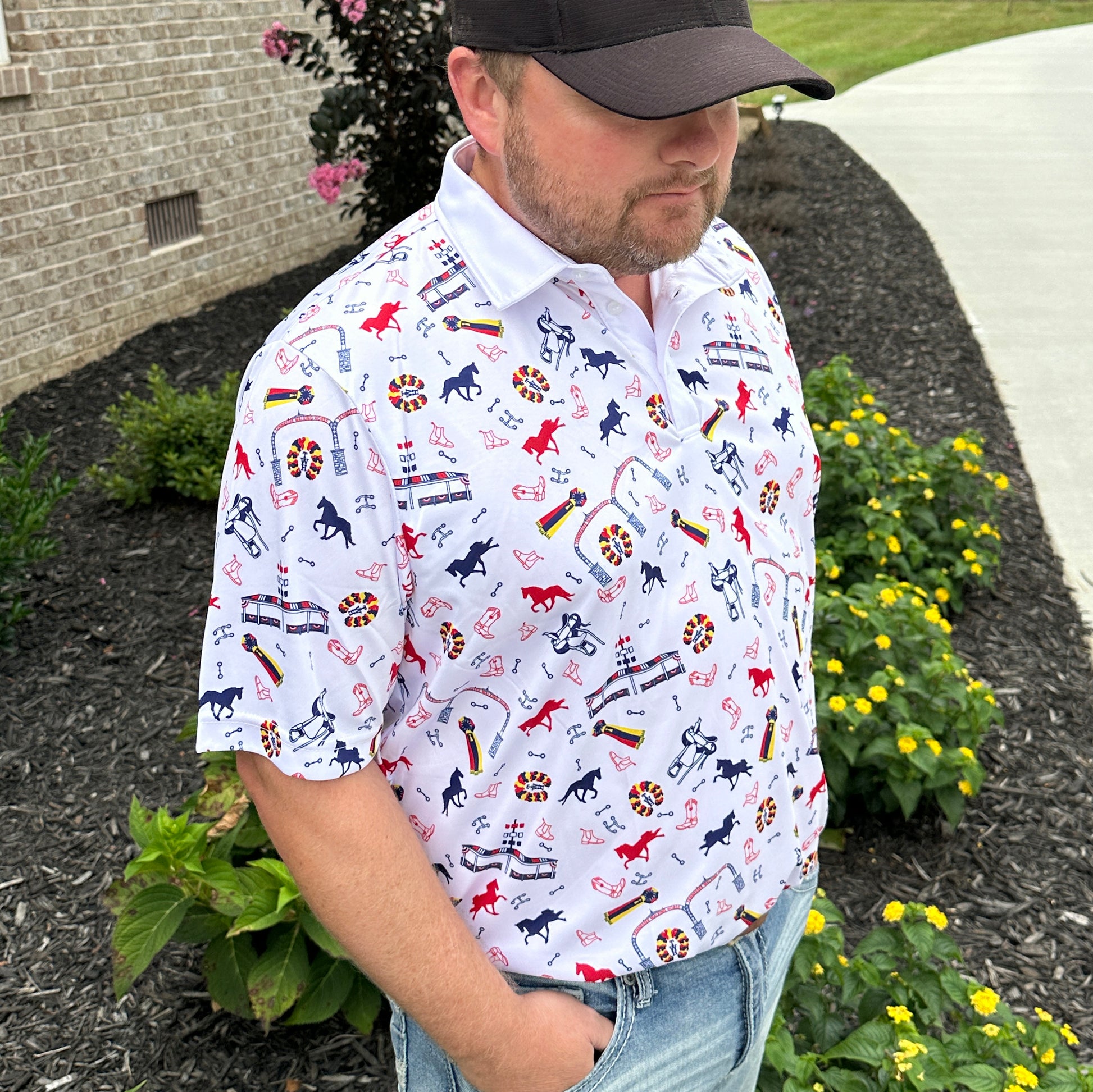 This TWH Celebration Polo Shirt was custom designed featuring both Pleasure and Performance Tennessee Walking Horses . . . perfect for showcasing your love for the breed.